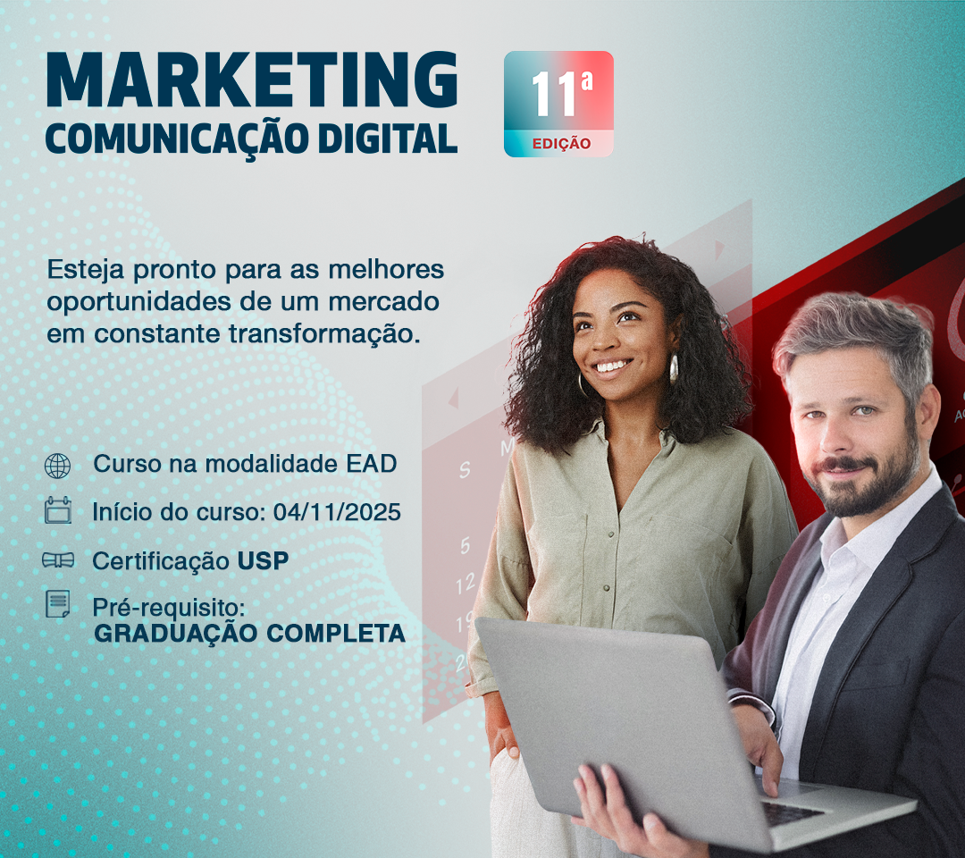 Com uma abordagem voltada para o planejamento integrado, marketing de conteúdo, redes sociais e análise de dados, o curso oferece ferramentas essenciais para quem quer criar campanhas relevantes, fortalecer marcas e se comunicar de forma eficaz com diferentes públicos. Tudo isso com a qualidade da Universidade de São Paulo (USP) e conteúdo alinhado às demandas do ambiente digital.