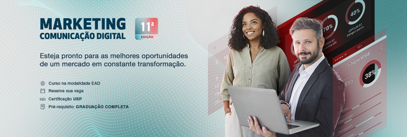 A Extensão em Marketing e Comunicação Digital EaD da ECA-USP é uma formação dinâmica, atualizada e prática, ideal para profissionais que desejam se posicionar com mais segurança no mercado e evoluir na carreira com foco em estratégias digitais e gestão da comunicação