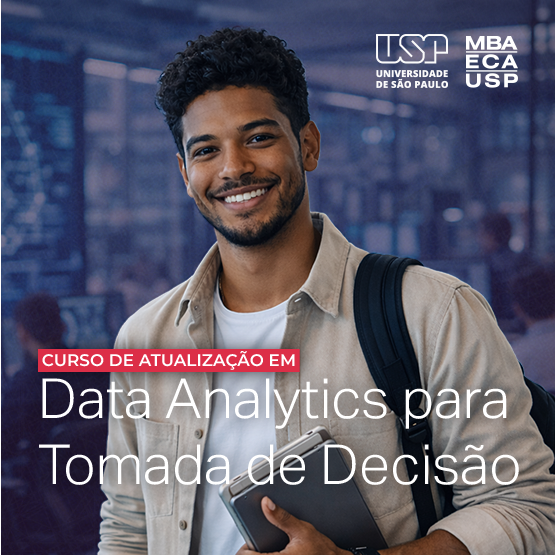 O curso de atualização Data Analytics para Tomada de Decisão, oferecido pela USP – Universidade de São Paulo, foi desenvolvido para profissionais de qualquer área, mesmo sem experiência prévia em tecnologia, que desejam dominar a análise de dados aplicada aos negócios.
