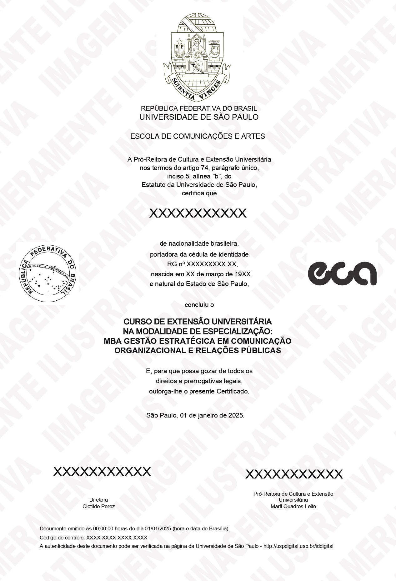 O certificado oficial do curso de MBA Gestão Estratégica em Comunicação Organizacional e Relações Públicas (Gestcorp) EAD ECA-USP (carga horária 400 horas) da Escola de Comunicações e Artes da Universidade de São Paulo.