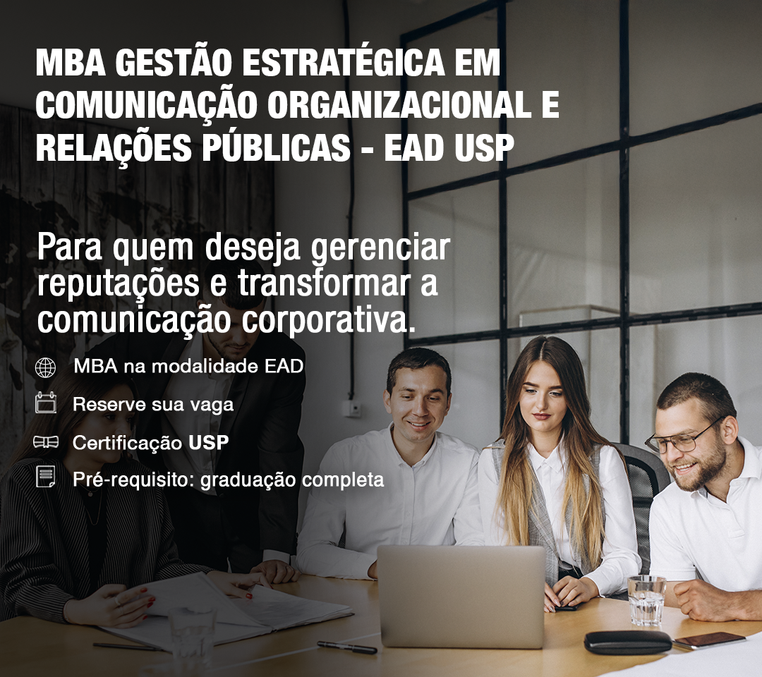 Essa é a sua chance de entender na prática como o MBA Gestão Estratégica em Comunicação Organizacional e Relações Públicas EAD da USP pode transformar sua carreira.