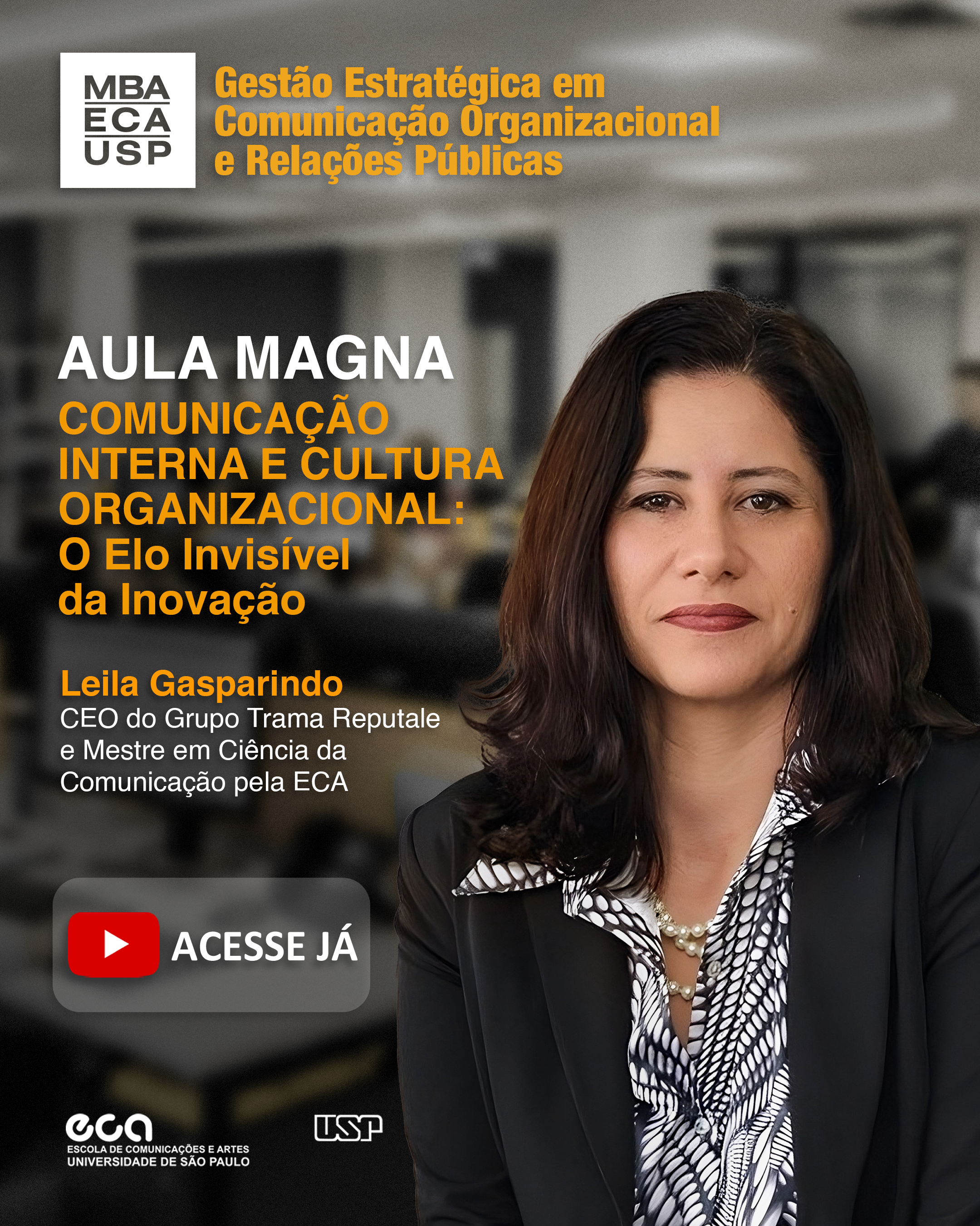 Com mediação da Prof.ª Valéria Castro, coordenadora do MBA GESTCORP da ECA-USP, o encontro destaca o papel estratégico da comunicação na promoção de culturas organizacionais mais inclusivas, éticas e alinhadas às expectativas da sociedade contemporânea. Durante a conversa, são debatidas as implicações da diversidade para a reputação institucional, o engajamento dos públicos e o fortalecimento dos valores corporativos.