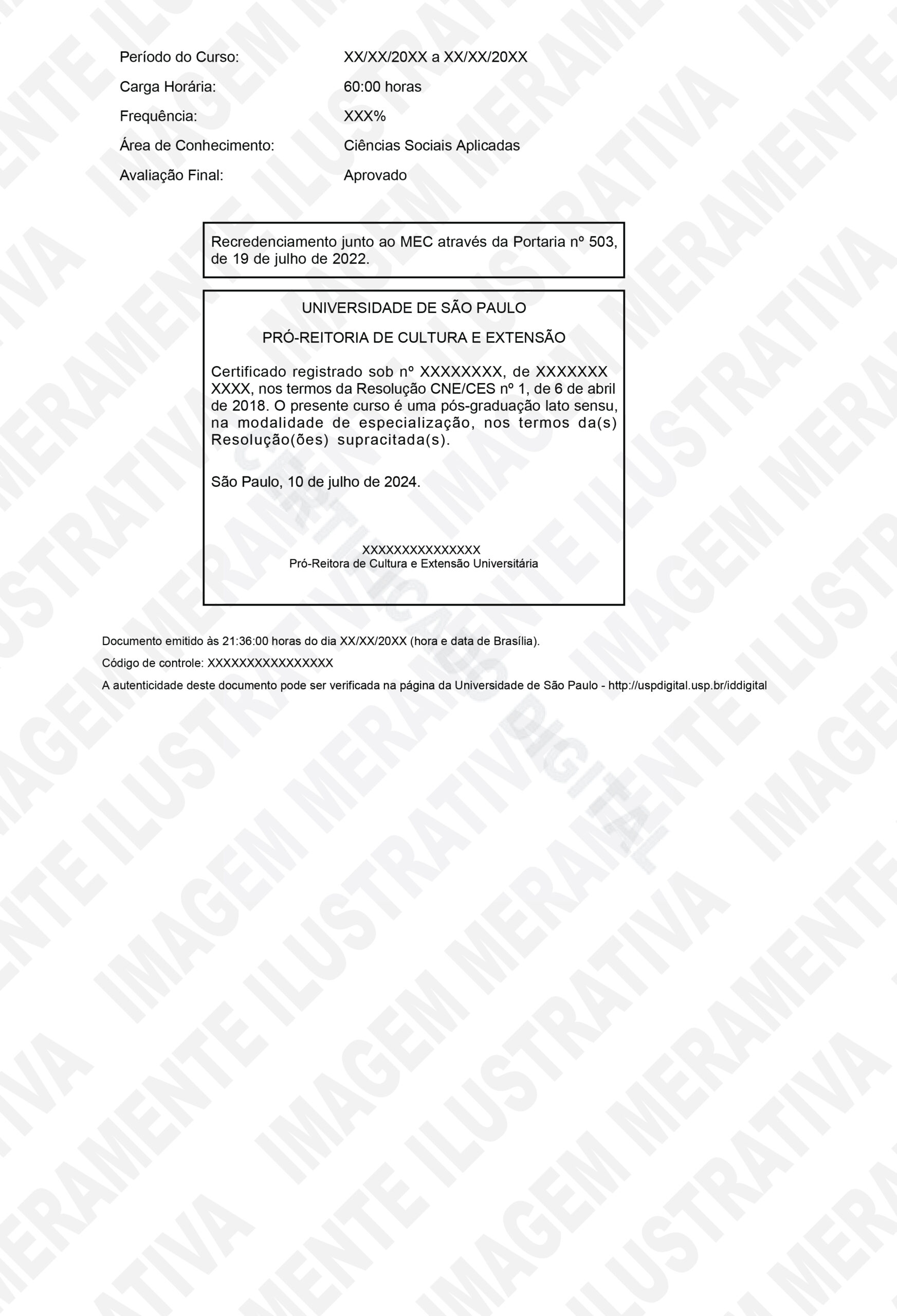 Todos os cursos pela USP possuem reconhecimento pelo MEC através da Portaria nº 503, de 19 de julho de 2022.