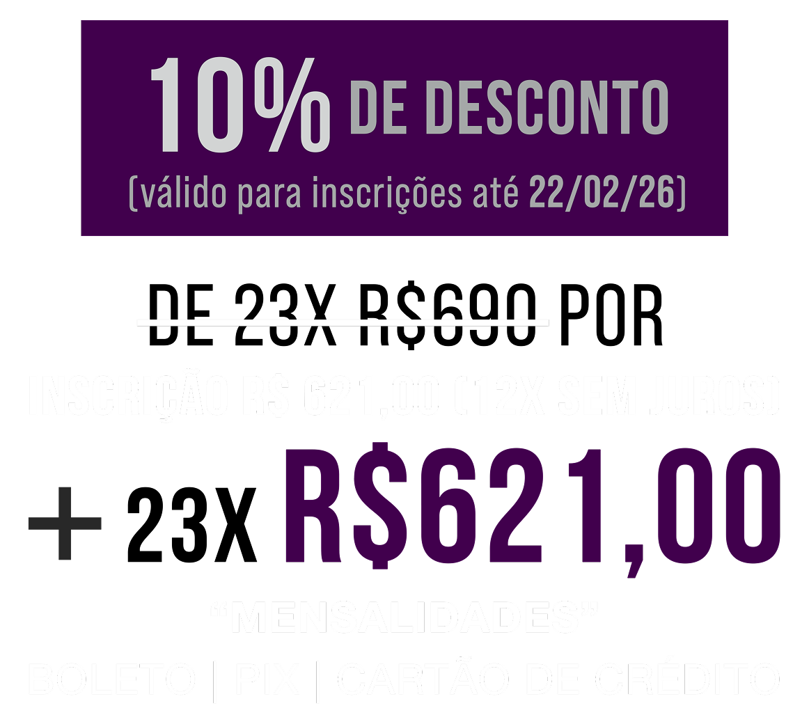 As aulas acontecem às quartas-feiras, das 19h às 22h30min, ao vivo na plataforma exclusiva.