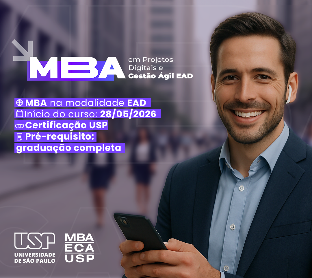 Com o MBA em Projetos Digitais e Gestão Ágil EAD ECA-USP, você estará apto a planejar, executar e liderar projetos digitais com eficiência, dominando as ferramentas e competências necessárias para atuar em contextos de inovação, agilidade e transformação digital.